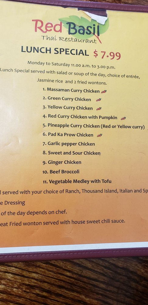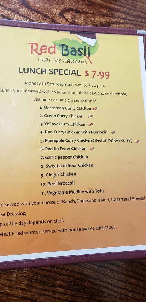 Red Basil Thai Restaurant in West Jordan, UT offers a variety of authentic Thai dishes with options for delivery, takeout, and reservations. The menu features hot and flavorful Tom Yum soups, refreshing Eastern salads like Som Tum Thai, and satisfying fried rice choices including Pineapple Fried Rice. Customers rave about the generous portion sizes and perfectly spiced dishes, with favorites like red curry and pad Thai. The charming ambiance, with quirky decor and themed settings, adds to the overall dining experience. Customers appreciate the attentive service and quick food delivery. The unique forest and beach themes create an immersive dining atmosphere that sets Red Basil apart from other Thai restaurants. Don't miss out on the mango sticky rice for a sweet ending to your meal.